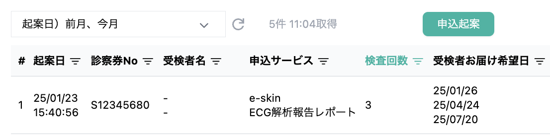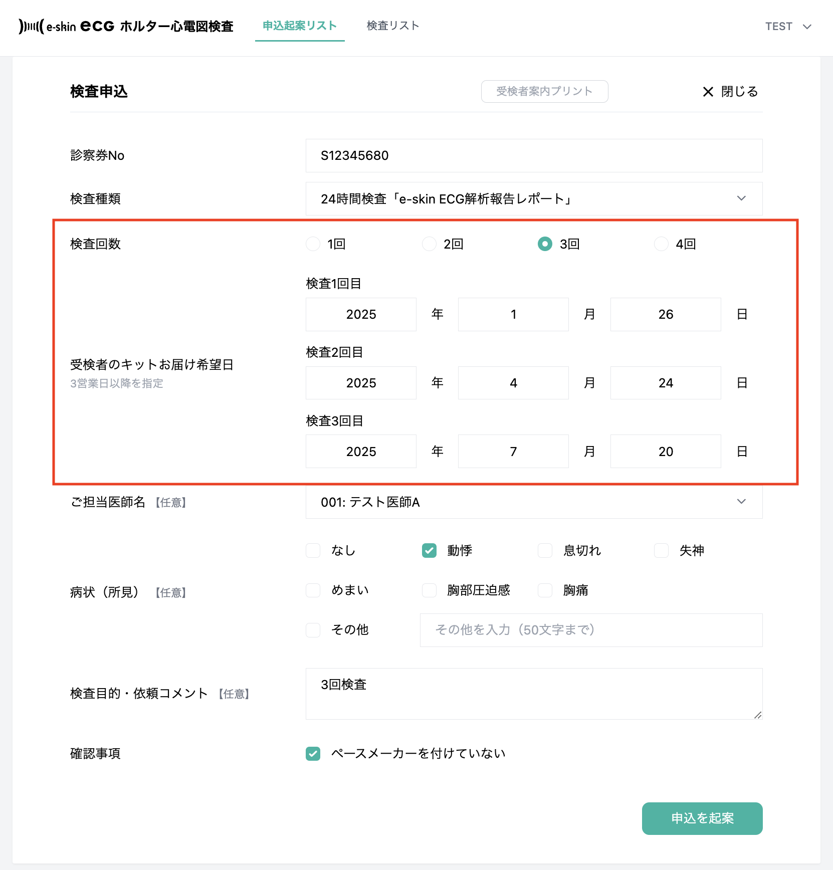 - 「検査回数」「受検者お届け希望日」が、表示されます