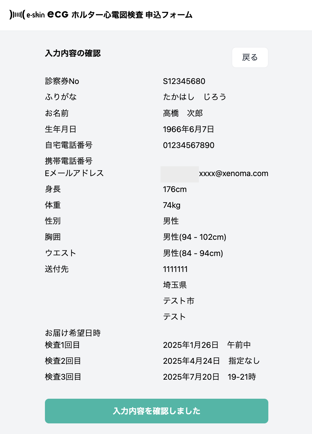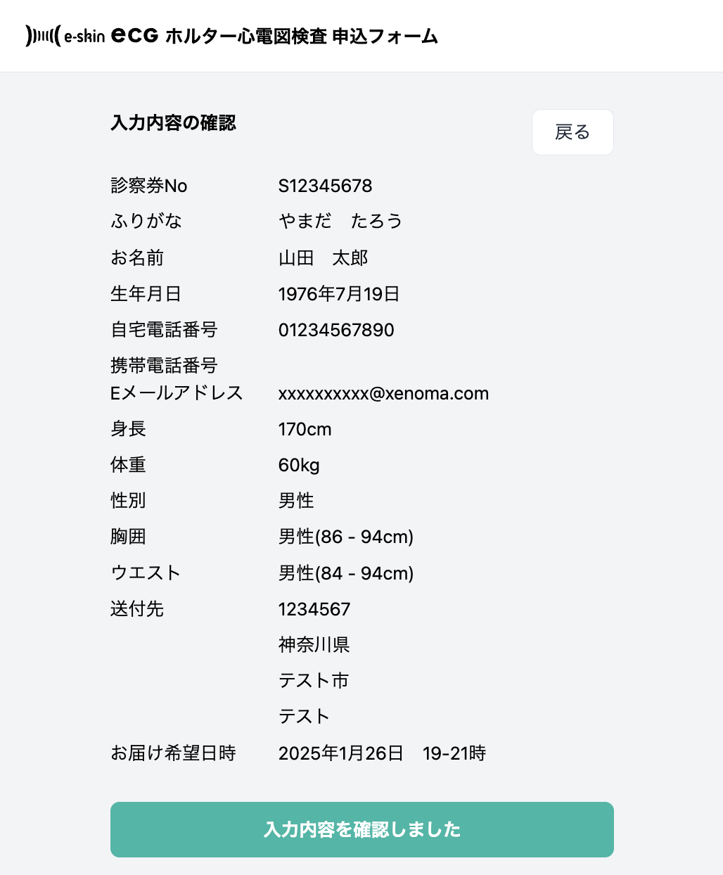 Eメールアドレスを入力した場合は、受付Eメールが送信されます。