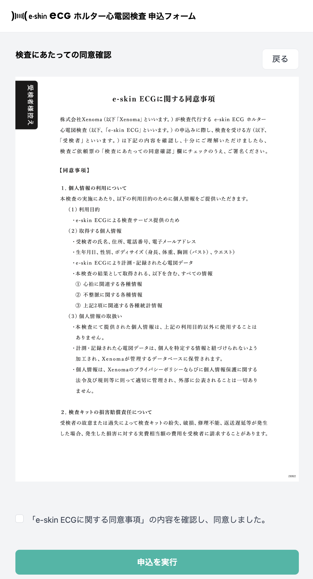 同意事項を確認し、チェックボックスを入れます。申込を実行します。