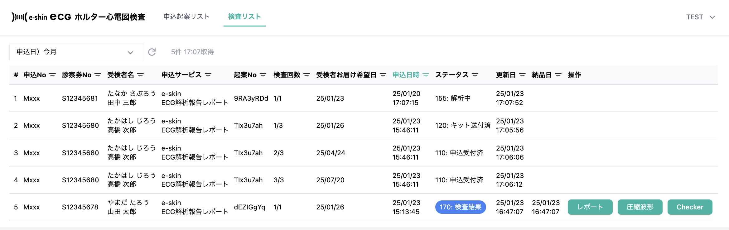| 170 | 検査結果 | レポート提出済、閲覧可 |
