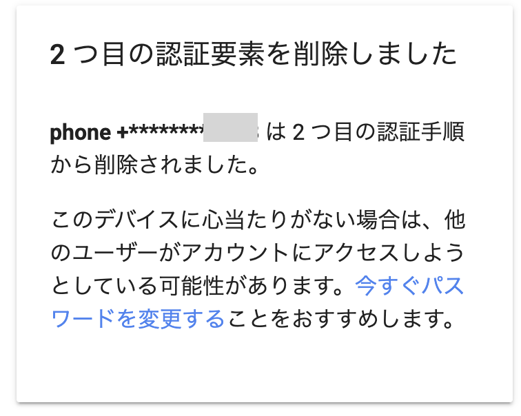 アカウント画面の2段階認証で、SMS/電話番号の横の「取り消す」ボタンを押します